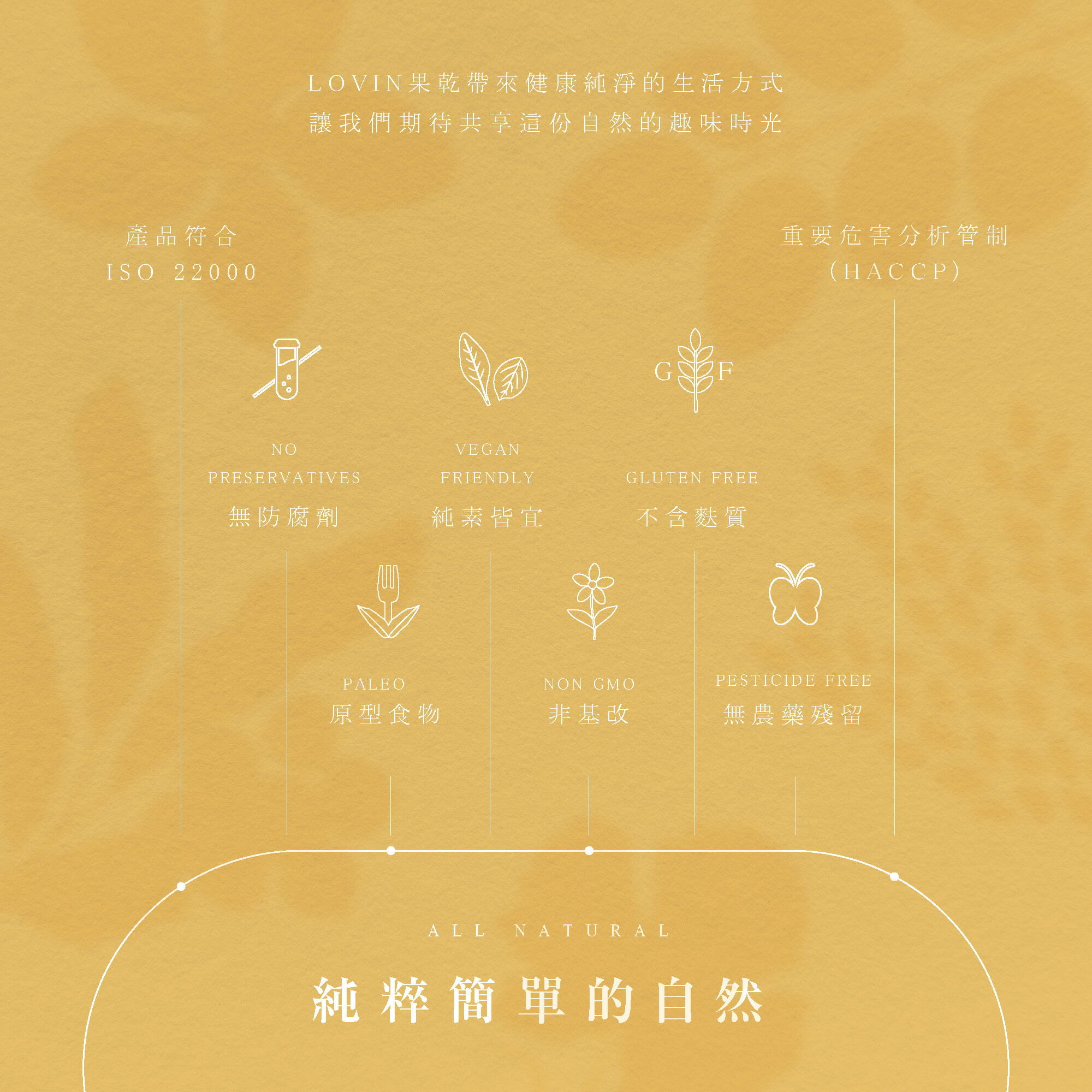 LOVIN 樂恋堅持天然製程低溫烘焙,無額外人工添加物,保留最原始的風味及營養,輕鬆享受美味無負擔。