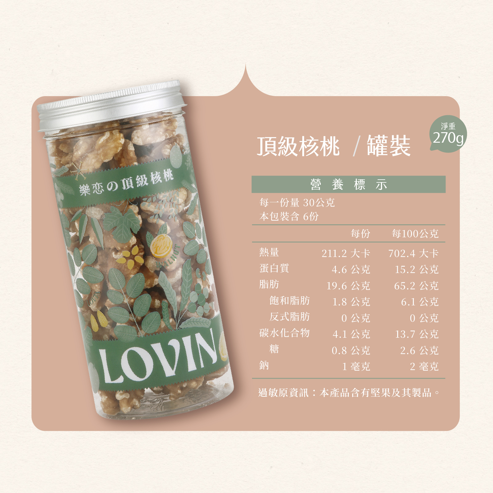 LOVIN美國核桃,顆顆飽滿完整、色澤自然金黃,低溫烘焙保留油脂香氣,口感酥鬆無苦味,是日常養生與健康生活的首選堅果。