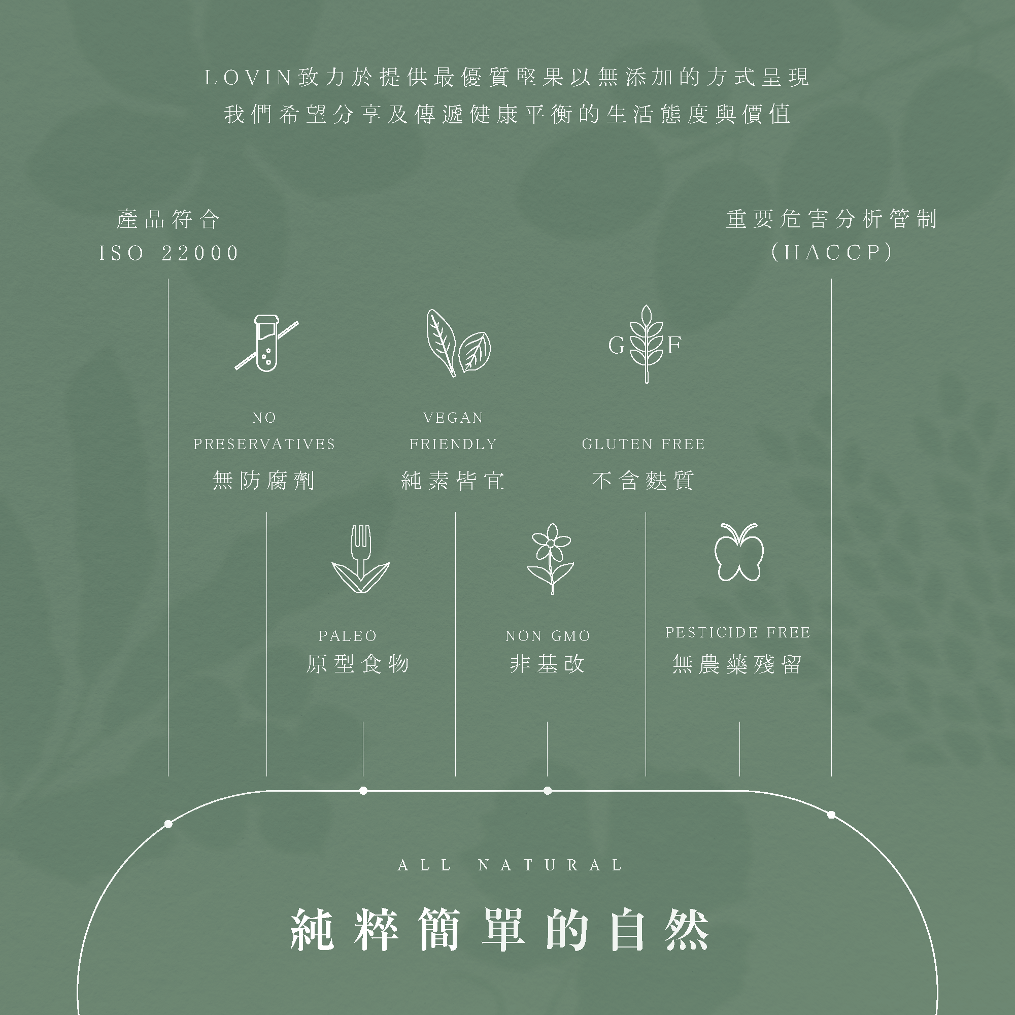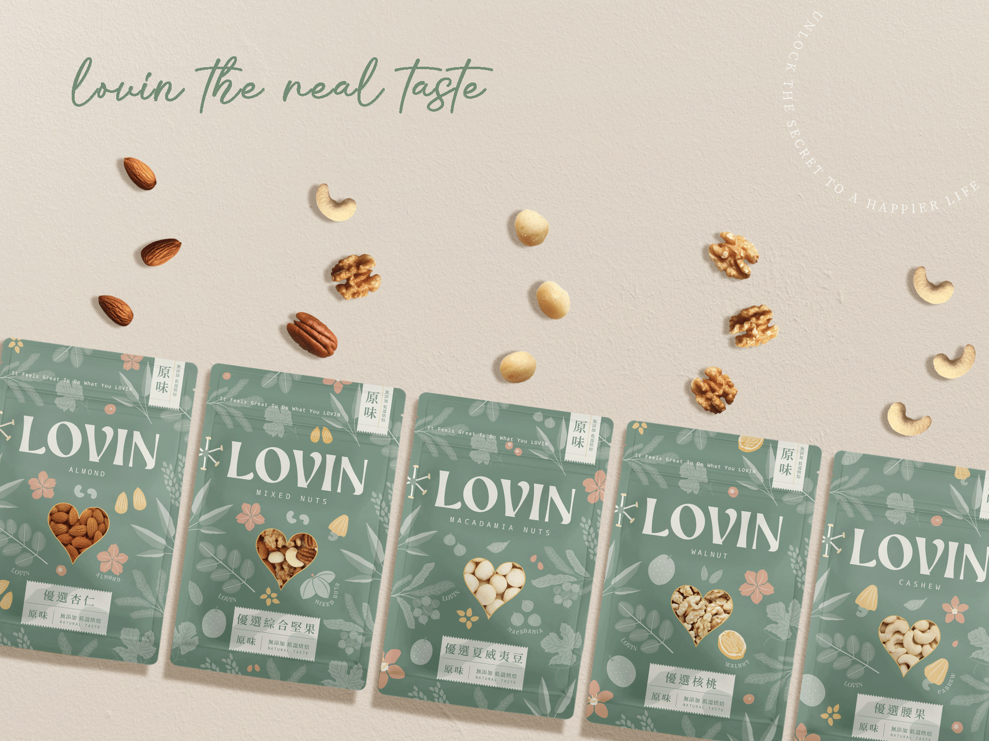 LOVIN 堅持天然製程低溫烘焙,無額外人工添加物及糖分,保留最原始的風味及營養,輕鬆享受美味無負擔。